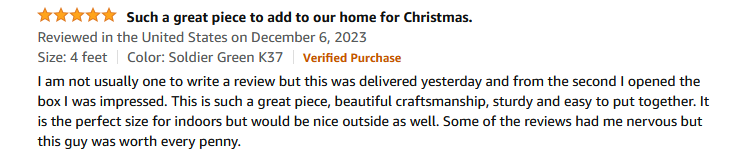 See Reviews from purchased customers. We expect to have your decoration example with reviews shown here soon.